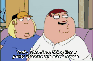 Yeah, There's nothing like a party at someone else's house. You never have to worry about cleaning up the mess. Da-da-da-da-da, hey! Da-da-da-da-da, hey!