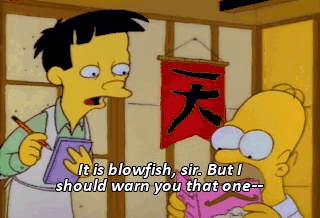 It is blowfish, sir. But I should warn you that one-- Come on, pal. Fugu me !