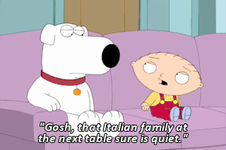 "Gosh, that Italian family at the next table sure is quiet." (SPEAKING RUSSIAN)
