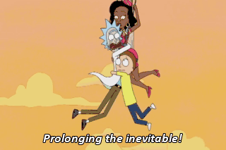Prolonging the inevitable! Listen, if we go into Mrs. Pancakes' dream, everything will go 100 times slower, Marty, That'll buy us some time to figure this out!
