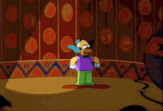 I'm not doing the spotlight bit. Let's have a warm Krusty welcome for my estranged father Rabbi Hyman Krustofski. Lenny a little reconciliation music, if you please.