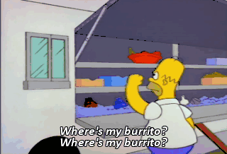 Where's my burrito? Where's my burrito? Where's my burrito? Ow! Then I got this scar sneaking under the door of a pay toilet.