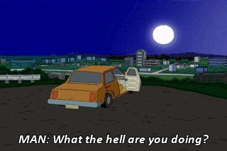 MAN: What the hell are you doing? WOMAN: Give that back! MAN: Man! WOMAN: Now, where were we? MAN: This is much better.