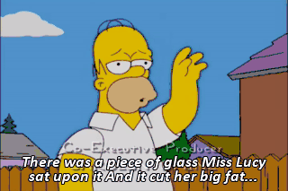 There was a piece of glass Miss Lucy sat upon it And it cut her big fat... (GASPING) Ask me no more questions I'll tell you no more... Ow!