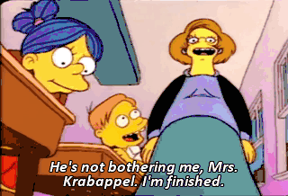 He's not bothering me, Mrs. Krabappel. I'm finished. May I go outside and read under a tree ? Certainly, Martin.