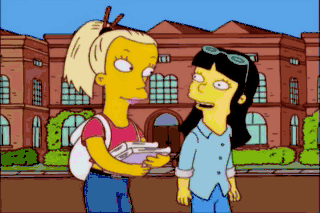 That place had a Manson family vibe. Yeah, well, I live in a dorm without a DSL line. Freaky. I think this soup's a little hot. Bart, don't slurp your soup.