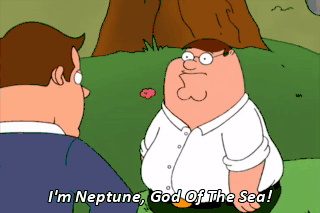 I'm Neptune, God Of The Sea! I sink ships and conjure up storms! No, you're not. I am. And you know nothing of my work.