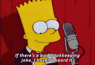 If there's a bad bookkeeping joke, I haven't heard it. It's 11:00. Do you know where your children are? I told you last night, no! Where is Bart anyway? His dinner is getting all cold and eaten.