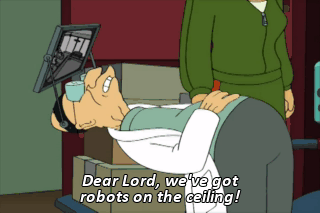 Dear Lord, we've got robots on the ceiling!