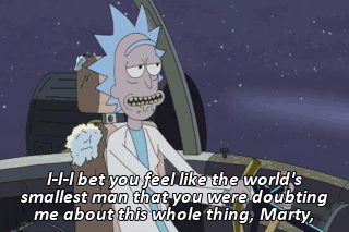 l-l-l bet you feel like the world's smallest man that you were doubting me about this whole thing, Marty, Oh, Rick, something's not right. Yeah, you. You're not right -- ever. No, no! Look, you idiot!