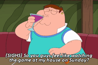 (SIGHS) So you guys feel like watching the game at my house on Sunday?