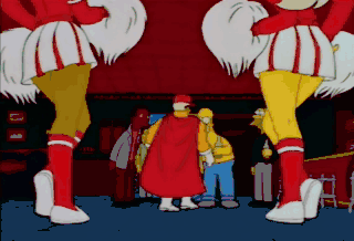 Duffman wants to party down with the man who sent in... 10,000 Duff labels to bring me here today. I've got a bottomless mug of new Duff Extra Cold... for Barney Gumble!
