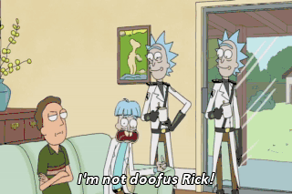 I'm not doofus Rick! I'm Rick J19-Zeta-7! Oh, is that the timeline where everybody eats poop? Jerry, you know this guy eats poop, right? Hey, I don't eat poop!