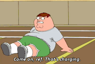Come on, ref. That's charging. Your feet were moving. No foul. No foul? Aw, That's a stupid call! And I know something about stupid calls.