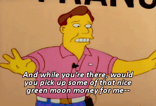 And while you're there, would you pick up some of that nice green moon money for me-- Royce McCutcheon. No deal, McCutcheon. That moon money is mine!