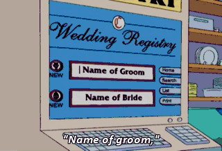 "Name of groom," Bart Simpson. "Name of bride," Lotta Cooties. (LAUGHING MALICIOUSLY) (BEEPS) (WHITE WEDDING PLAYING) It's a nice day for a white wedding
