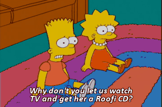 Why don't you let us watch TV and get her a Roofi CD? Bart! (IN PIG LATIN)