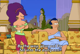By the way, your pal Fry fell into the dungeon. Take him a taco so he doesn't die and stink up the place.