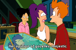 Her opinion of gazelles, majestic. Her emotions, confused and hurt. I swear, I didn't know this would happen.