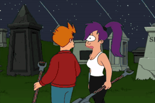 There. Now no one will be able to say I don't own John Larroquette's spine. Aha! My brother's grave. "Philip Fry, The Original Martian." It's all lies, every word of it.