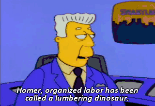 Homer, organized labor has been called a lumbering dinosaur.