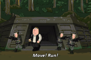 Move! Run! The shield is down. Commence attack on the Death Star's main reactor. The shield may be down, but they've gone into glitter-ball mode. (DISCO VERSION OF STAR WARS THEME PLAYING)