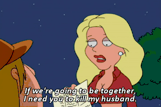If we're going to be together, I need you to kill my husband. Do you have any idea what time it is? Get in the house, fatty!