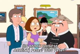(IN MOCK CHINESE ACCENT) Peter? Who Peter? I didn't say "Peter." I said "Dad."
