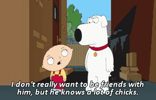 I don't really want to be friends with him, but he knows a lot of chicks.
