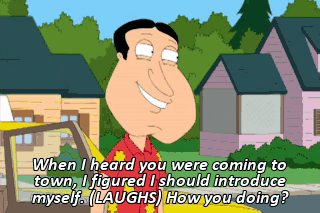 When I heard you were coming to town, I figured I should introduce myself. (LAUGHS) How you doing?
