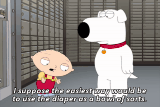 I suppose the easiest way would be to use the diaper as a bowl of sorts.