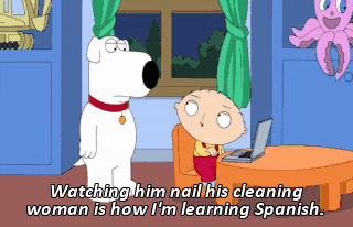 Watching him nail his cleaning woman is how I'm learning Spanish.