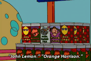 "John Lemon." "Orange Harrison." "Paul McIced Tea" "Mango Starr." Hey, Bart, how about a blast from the past? A 40-year-old novelty beverage?