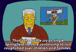 S15E8: Marge vs. Singles, Seniors, Childless Couples and Teens, and Gays