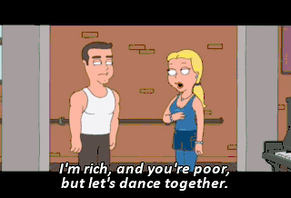 I'm rich, and you're poor, but let's dance together.