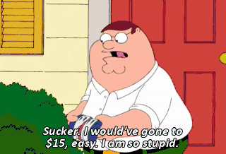 Sucker. I would've gone to $15, easy. I am so stupid.