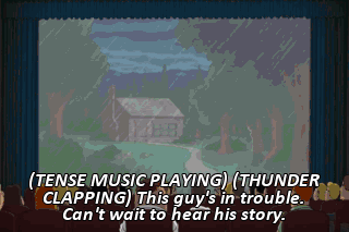 (TENSE MUSIC PLAYING) (THUNDER CLAPPING) This guy's in trouble. Can't wait to hear his story.