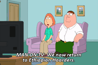 MAN ON TV: We now return to Ethiopian Hoarders. (SOBBING) I don't know how it got like this! Dad, Mom, there's something I want to ask you.