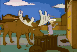 Wha-- Hey, moose! Shoo! Yeah, I'm talkin' to you! Get off my lawn, now!