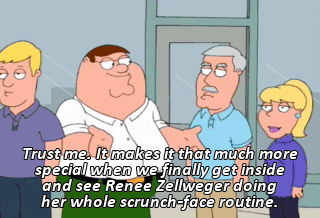 Trust me. It makes it that much more special when we finally get inside and see Renee Zellweger doing her whole scrunch-face routine.