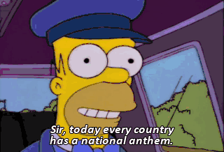 Sir, today every country has a national anthem. Did they have national anthems 2,000 years ago? Sure. Sure we had. Of course we was caves. But every cave had a national anthem.