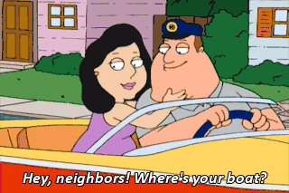 Hey, neighbors! Where's your boat? We didn't take the boat. We took the mystery box.