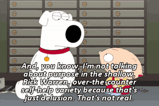 And, you know, I'm not talking about purpose in the shallow, Rick Warren, over-the-counter self-help variety because that's just delusion. That's not real.