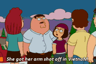 She got her arm shot off in VietnaM.