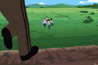 (TRAIN WHISTLE SOUNDS) Head for the tracks! (GUNSHOTS FIRED) Oh, no, they're shooting at us! Good thing bad guys are such terrible shots. Man, these guys are elusive! Quick! Hop on!