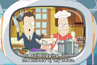 You quit tugging, i-i’m in the middle of my news.
