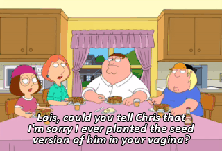 Lois, could you tell Chris that I'm sorry I ever planted the seed version of him in your vagina?