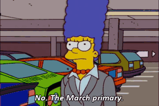 No. The March primary. Mom, can we get a pretzel? We've got pretzels at home. Not cinnamon. Well, we finally got things the way we want them.