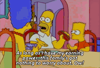 As long as I have my earning power, this family's got nothing to worry about. Ow!