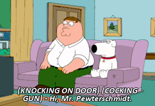 (KNOCKING ON DOOR) (COCKING GUN) - Hi, Mr. Pewterschmidt.